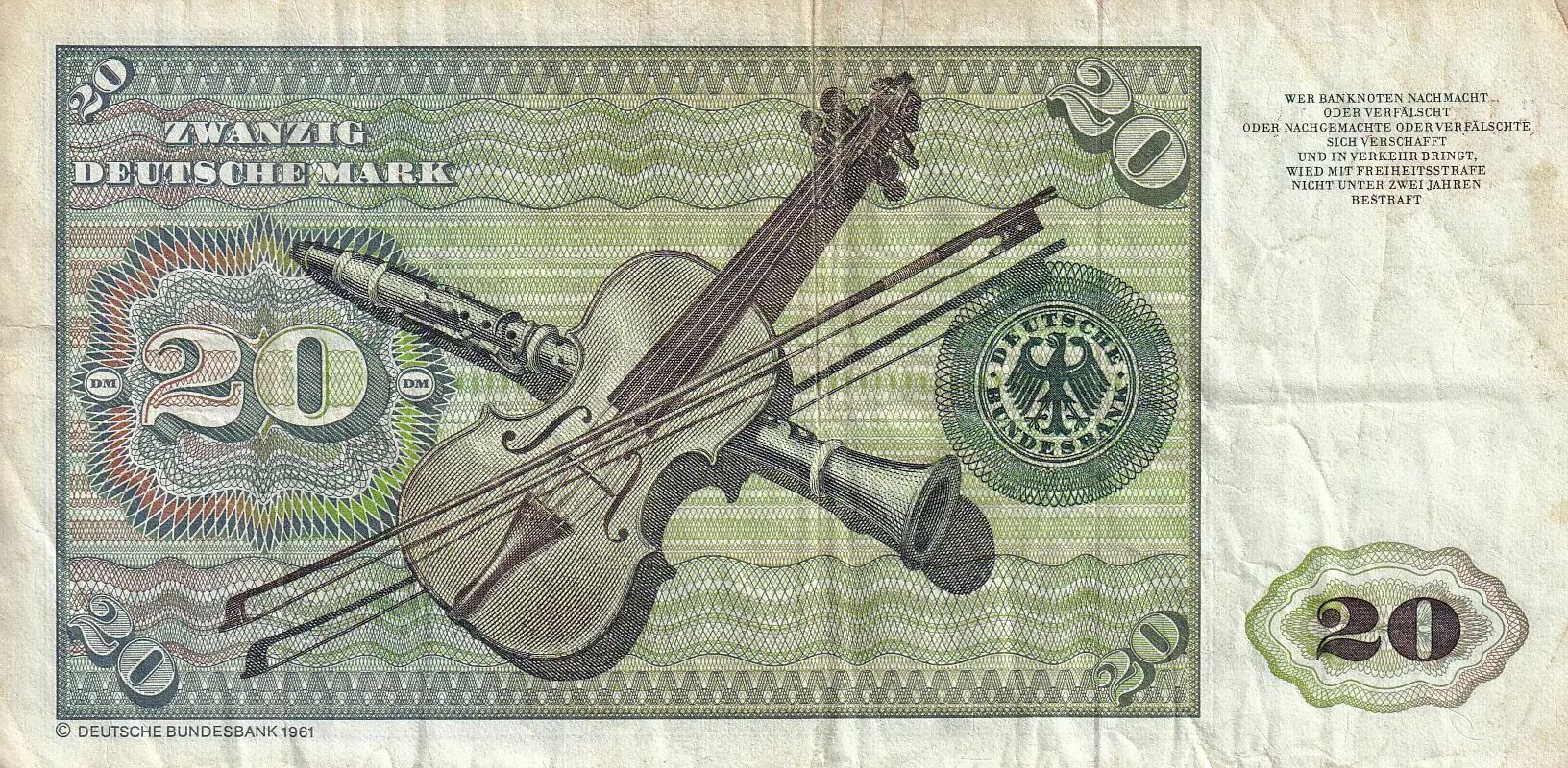 Banknote Germany (Federal Rep.) 20 Deutsche Mark - Elsbeth Tucher - Musical instruments - 1980 - VF - P32d