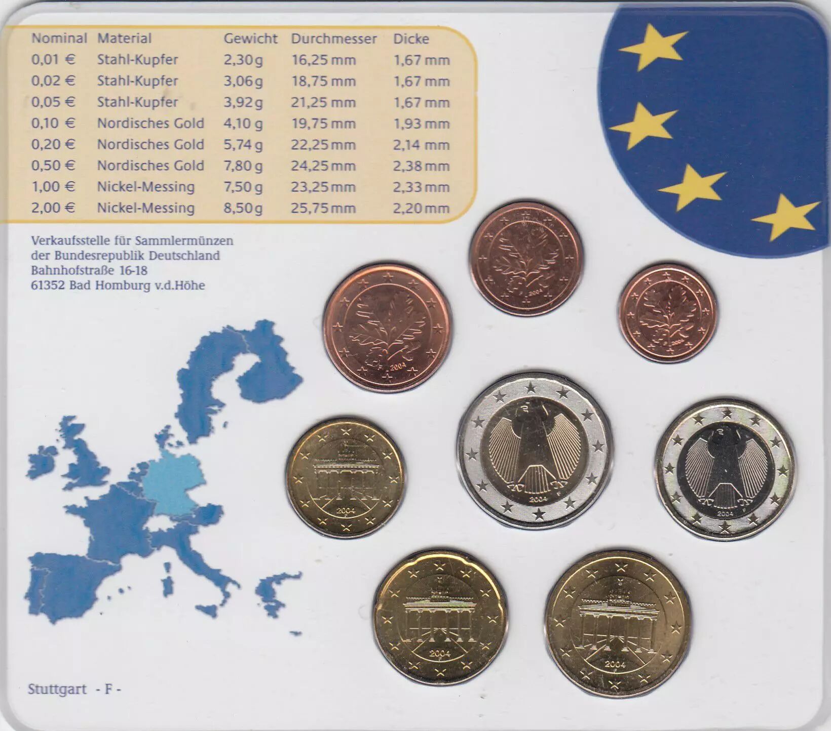 Coin Germany (Federal Rep.) Set of 8 coins 2004 - UNC - Stuttgart - F