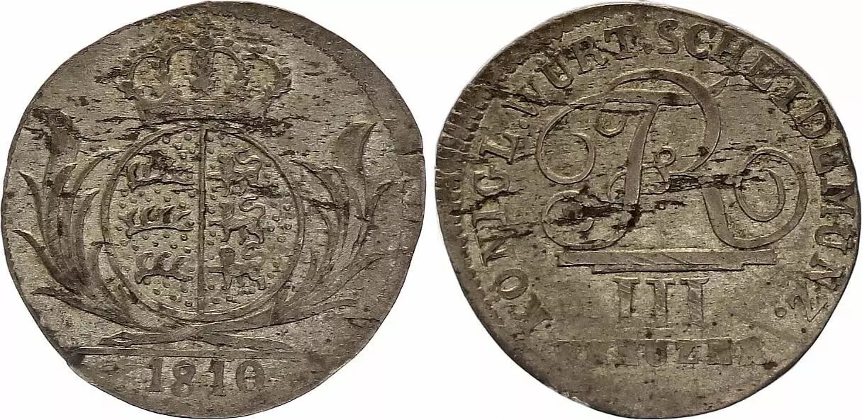 Home > World Coins > European Currencies > Germany - German States > Württemberg > Germany III Kreuzer, Frédéric I - Arms - 1810