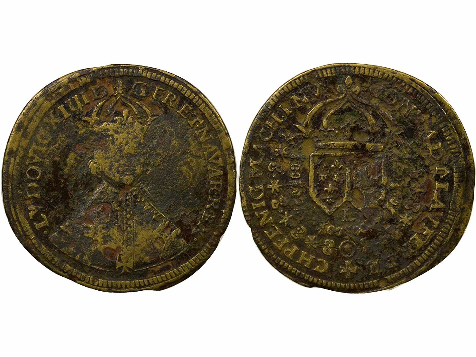 Observe : . LVDOVIC . XIIII . D - G . FR . ET . NAVAR . REX .