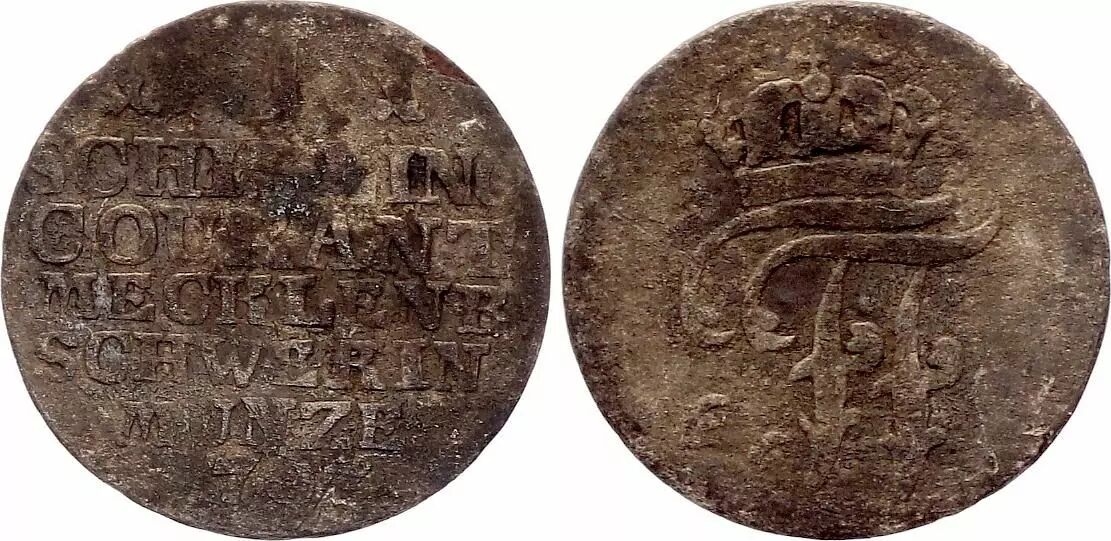 Home > World Coins > European Currencies > Germany - German States > Germany Mecklenburg-Schwerin, Frederick Francis I ? Schilling Courant - 1797
