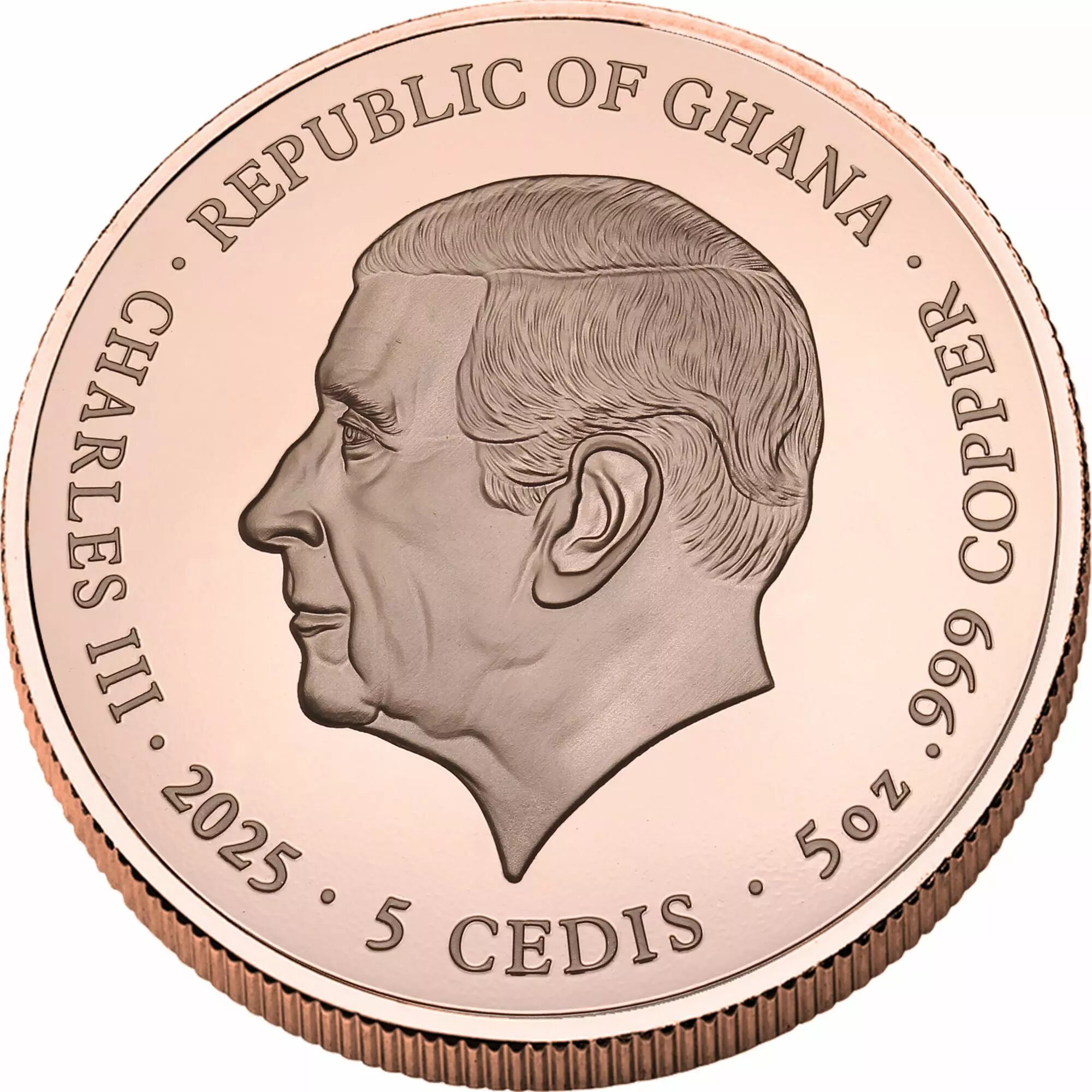 In 2025, the British investment coin "St. George & Dragon" in 22-carat rose gold will be issued for the last time. Celebrate this last strike with this giant 5-ounce copper coin! The reintroduction of this design in 1817 marks the origin of the Sovereign as we know it today, honoring a legacy that has endured for centuries. While paying homage to Pistrucci's iconic design, this version offers a contemporary interpretation, blending tradition and modern art. This coin was designed by Matthew Bonaccorsi, the former chief engraver of the Royal British Mint, known for his expertise in the field of medal art. In reference to the original design, the coin features 208 beads on the edge, symbolizing the number of years since the introduction of the Sovereign.