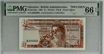 Billet Gibraltar 1 Pound Elisabeth II - 1983 - Specimen PMG 66 EPQ Série K000000