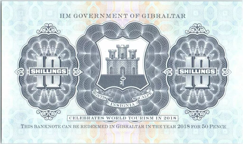 Billet Neuf émission commémorative de 2018 faite par le Gouvernement de Gibraltar pour les Touristes. Véritable billet avec valeur légale de 50 Pence