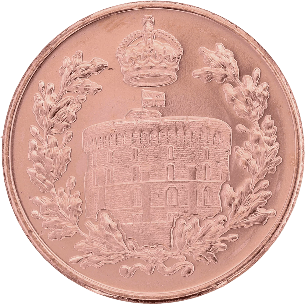The reverse of the coin depicts Windsor Castle. A crown is positioned at the top and another at the bottom of the central motif. The face value of the coin is 2 pence, representing 0.02 Gibraltar pounds, which is equivalent to about 0.023 euros. The pound is the decimal currency used since 1971.