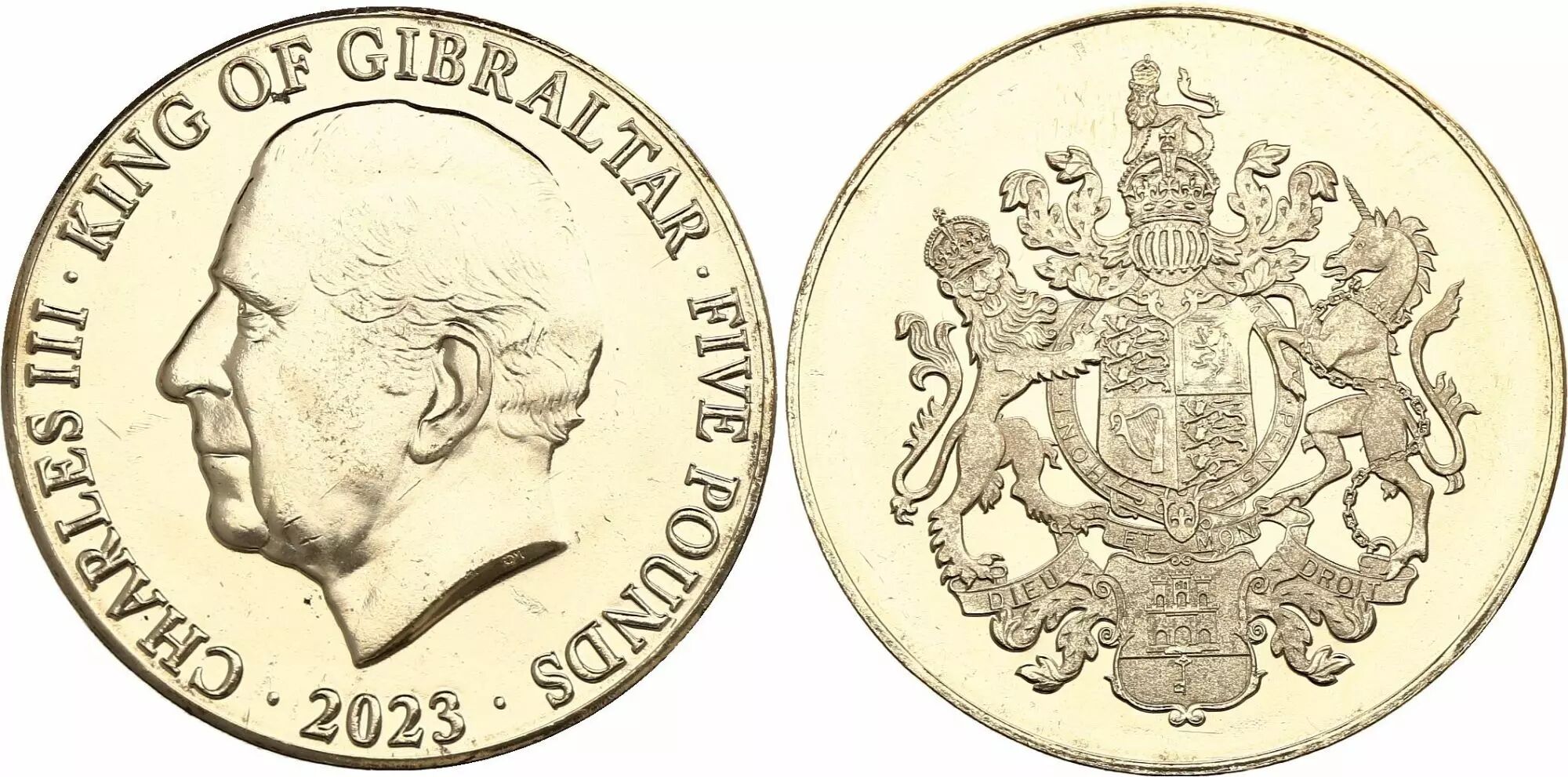Pièce Gibraltar 5 Livres Charles III - Couronnement - 2023
