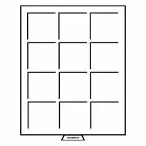 Tiroir teinte fumée, fond bordeaux avec 12 cases carrées pour monnaies jusqu'à 64 mm Ø. Idéal pour les monnaies et médailles de grande taille.