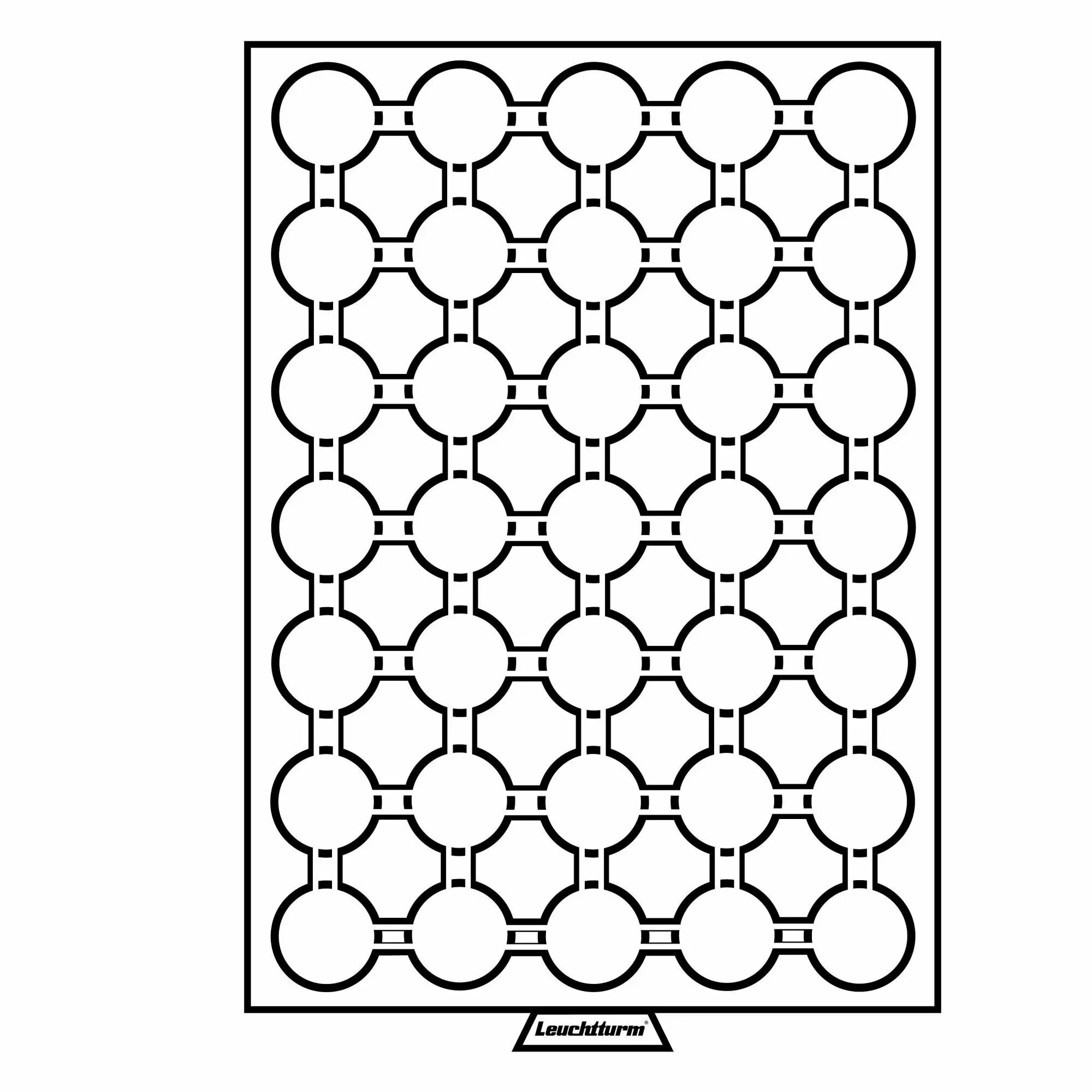 Tiroir teinte fumée, fond bordeaux avec 35 cases rondes pour capsules jusqu'à 32 mm Ø. Idéal pour les pièces de 2 euros sous capsules.