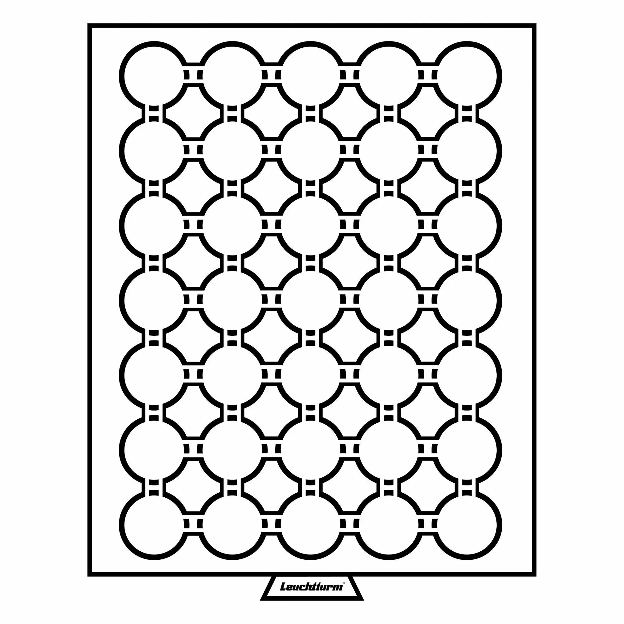 Tiroir teinte fumée, fond bordeaux avec 35 cases rondes pour monnaies jusqu'à 35 mm Ø.