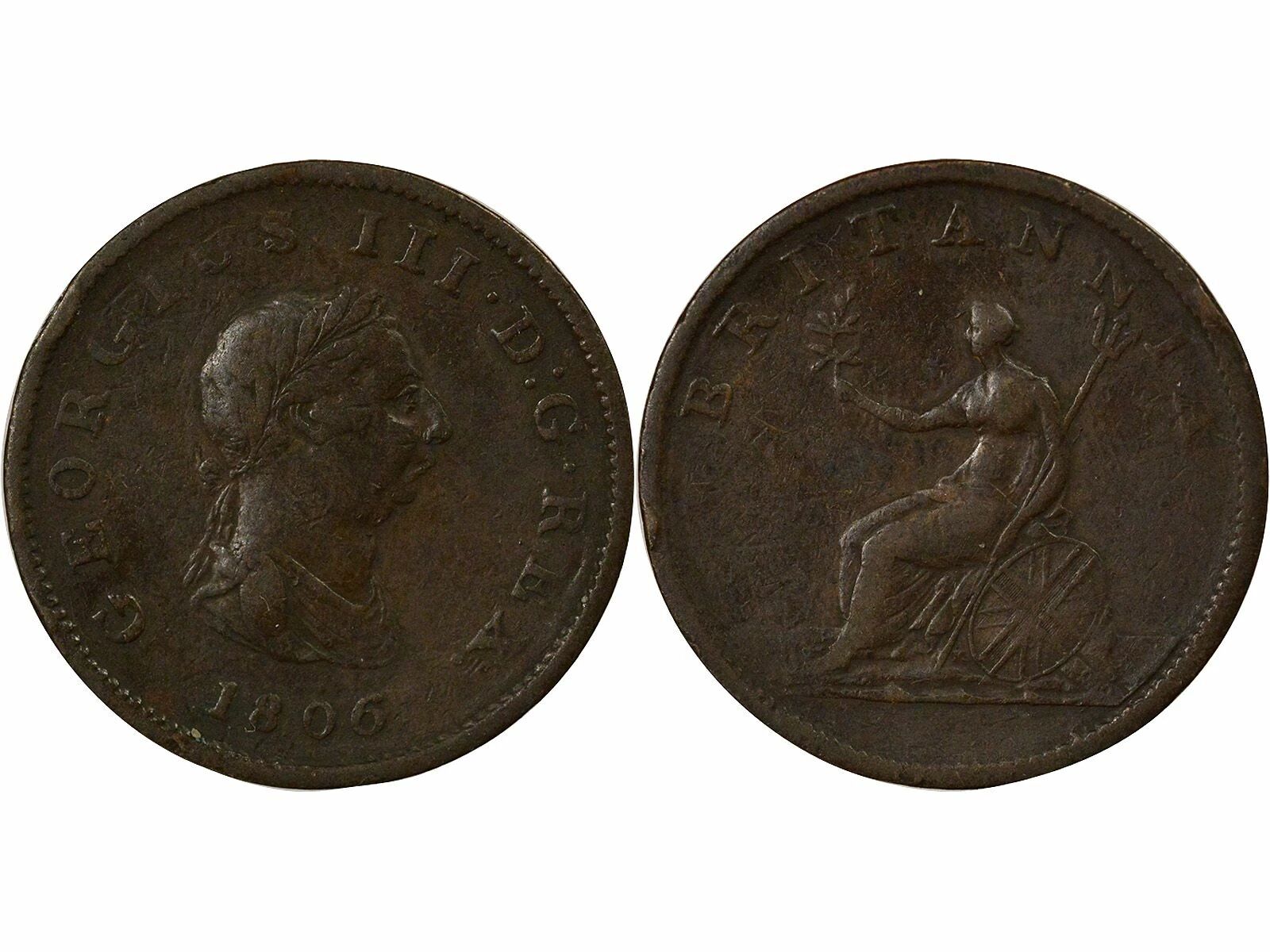 Pièce Grande Bretagne George III - 1/2 Penny, 4e Portrait - 1806 Soho
