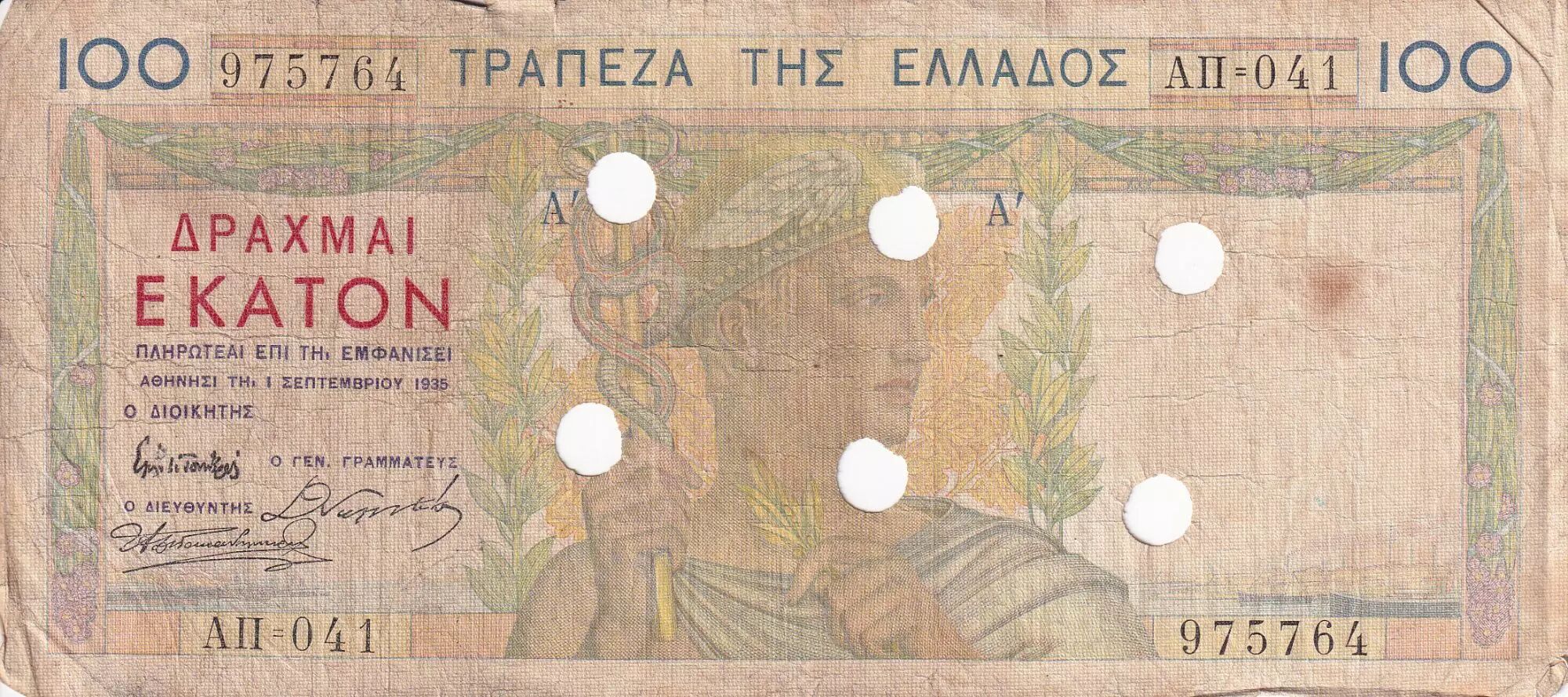 Accueil > Archivage > Grèce 100 Drachms - Annulé - 1935 - Série A - B - P.105