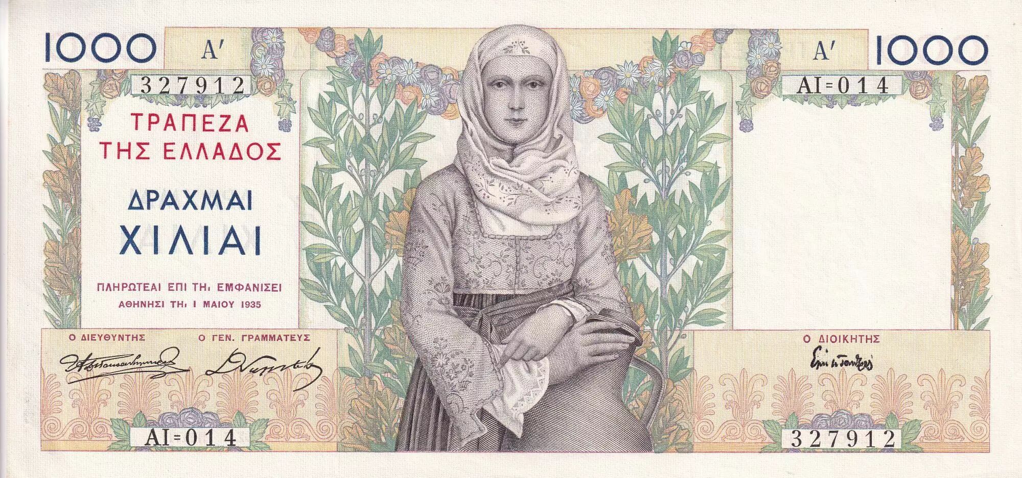 Billet Grèce 1000 Drachms - Femme - Travailleurs - 1935 - P.106