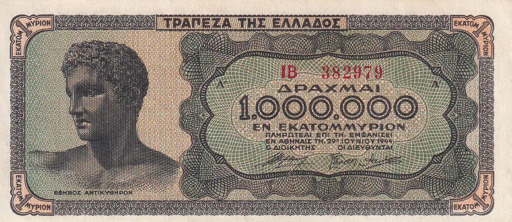 Accueil > Archivage > Grèce 1000000 Drachmes - Dieu - Parthénon - 1944- Série IB - P.127a