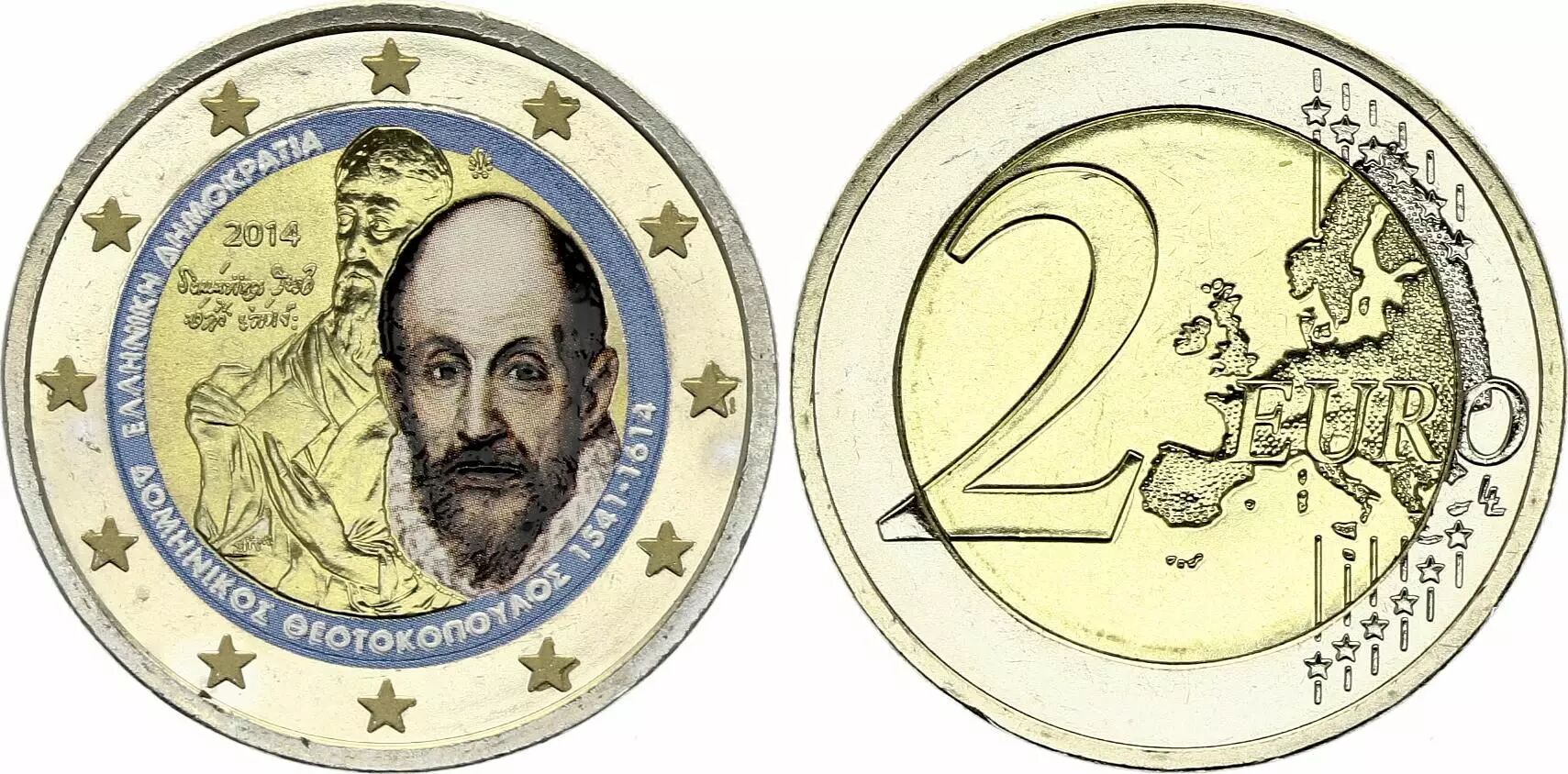 Pièce Grèce 2 Euros - El Greco - Colorisée - 2014