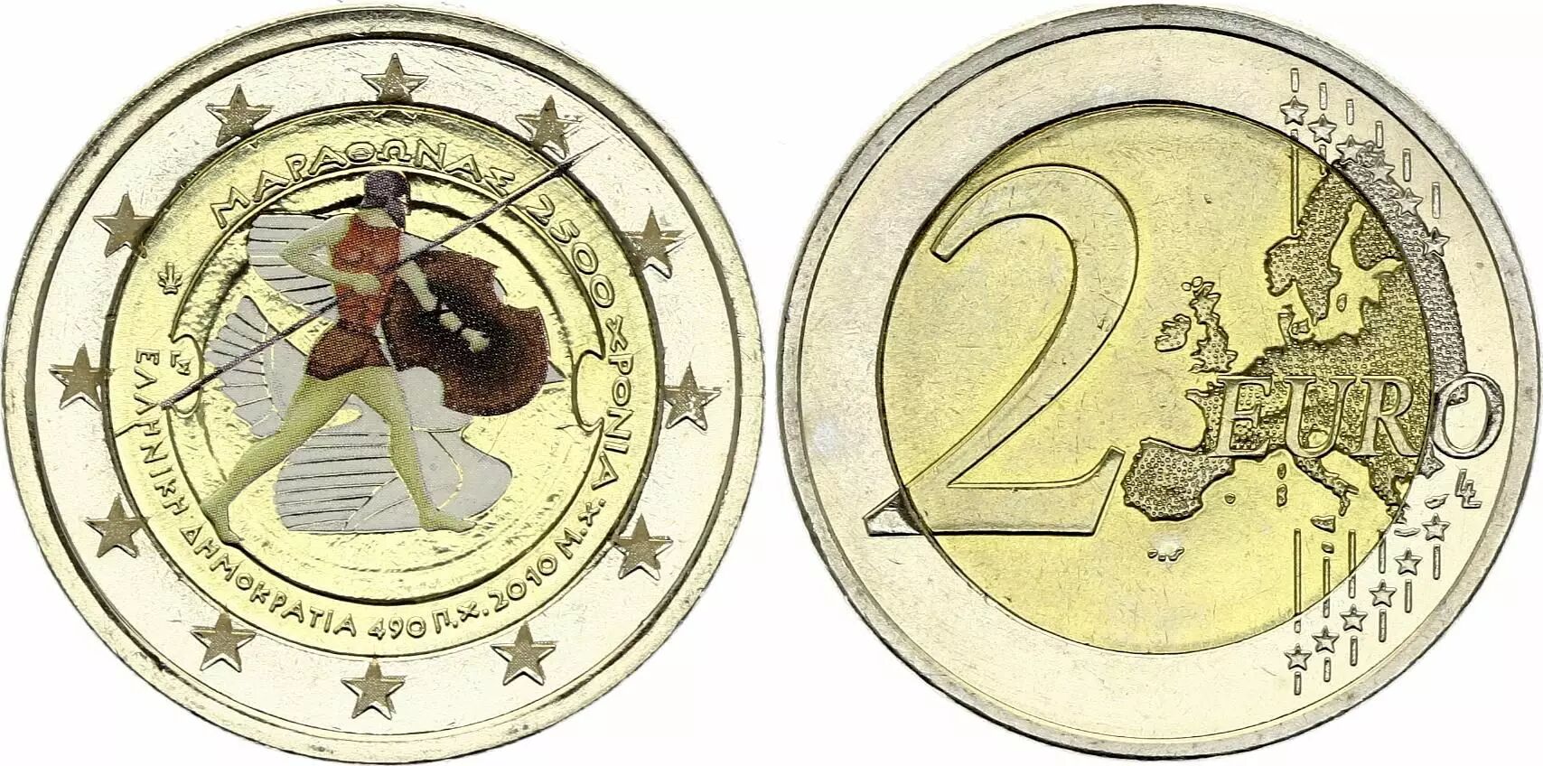 Pièce Grèce 2 Euros - Marathon - Colorisée - 2010