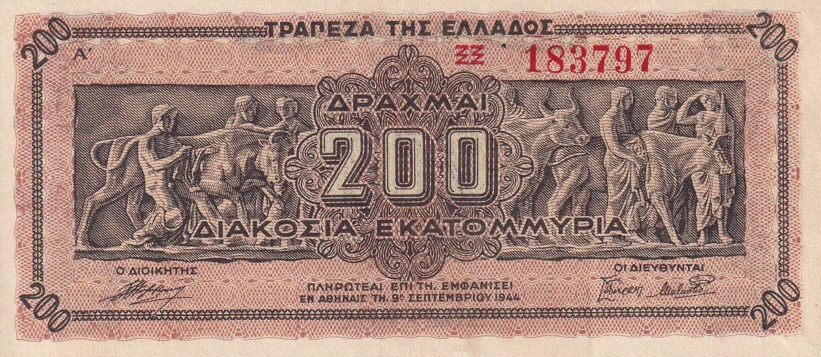 Billet Grèce 200 millions de Drachmes - Gravure -1944 - Série ZZ - SUP+ - P.131a