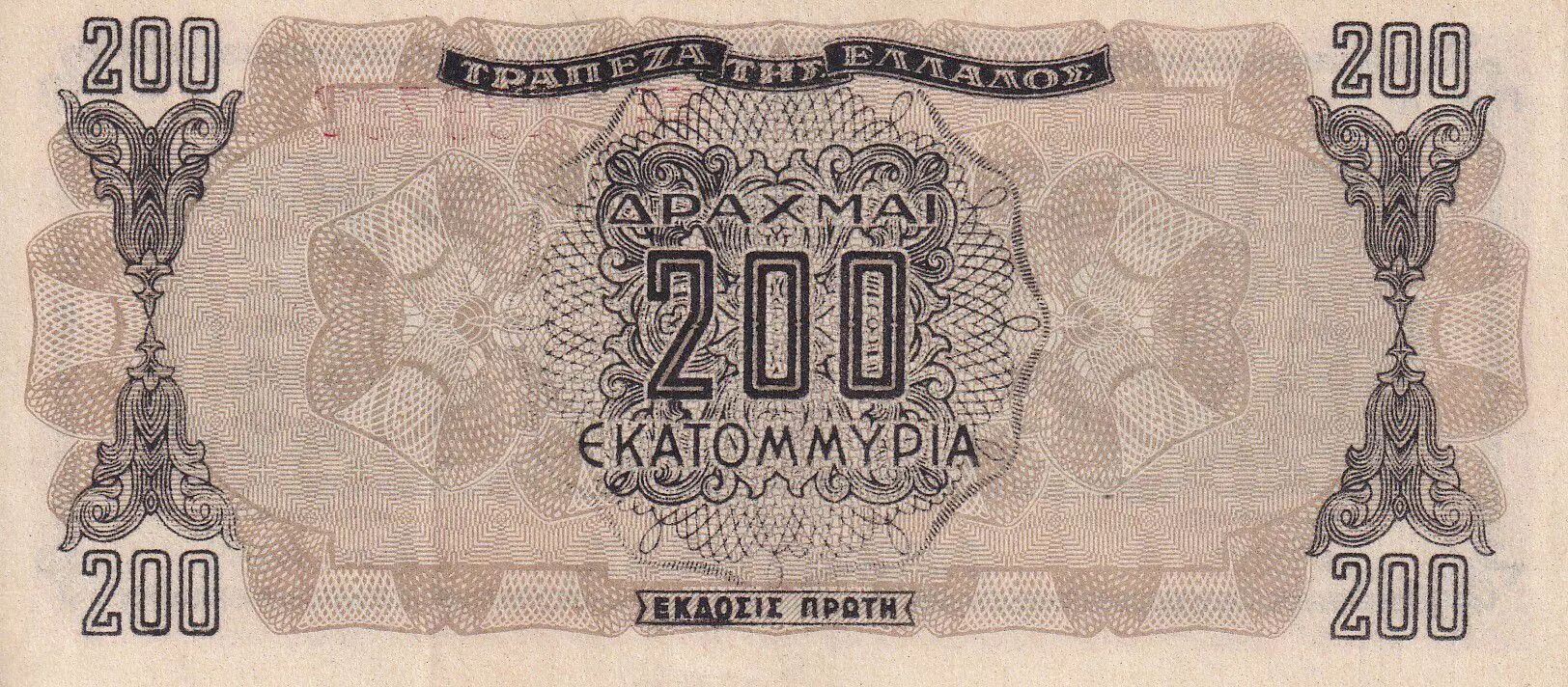 Accueil > Archivage > Grèce 200 millions de Drachmes - Gravure -1944 - Série ZZ - SUP+ - P.131a