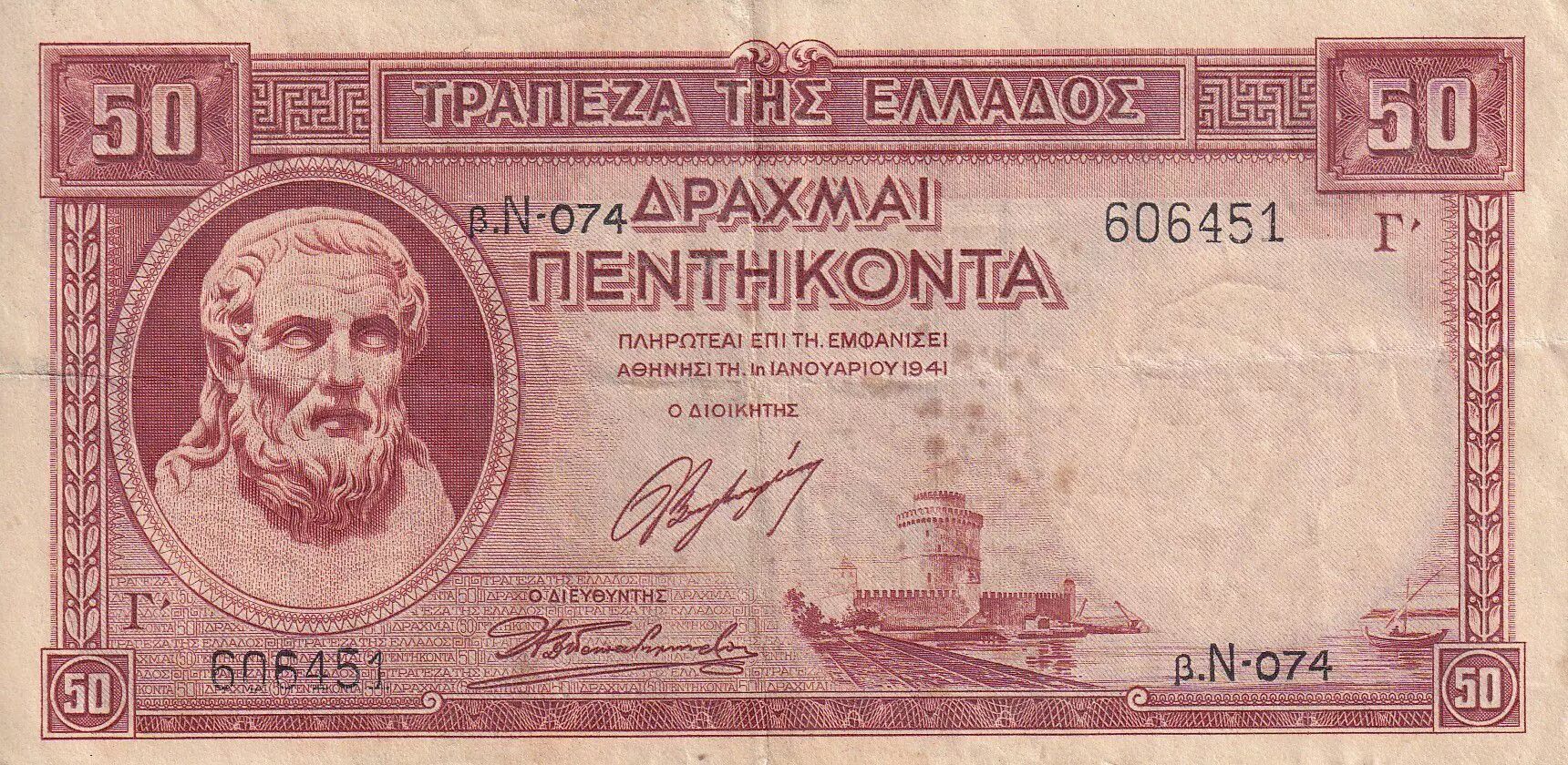 Accueil > Archivage > Grèce 50 Drachms - Fort - Gravure - 1941 - P.107