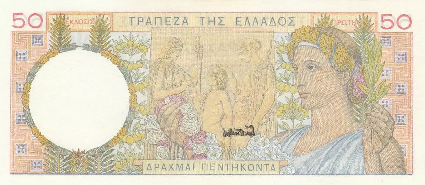 Accueil > Billets du Monde > Billets d'Europe > Grèce > Grèce 50 Drachms - Paysanne - Bas Relief, Cérès - 1935 - Série AH