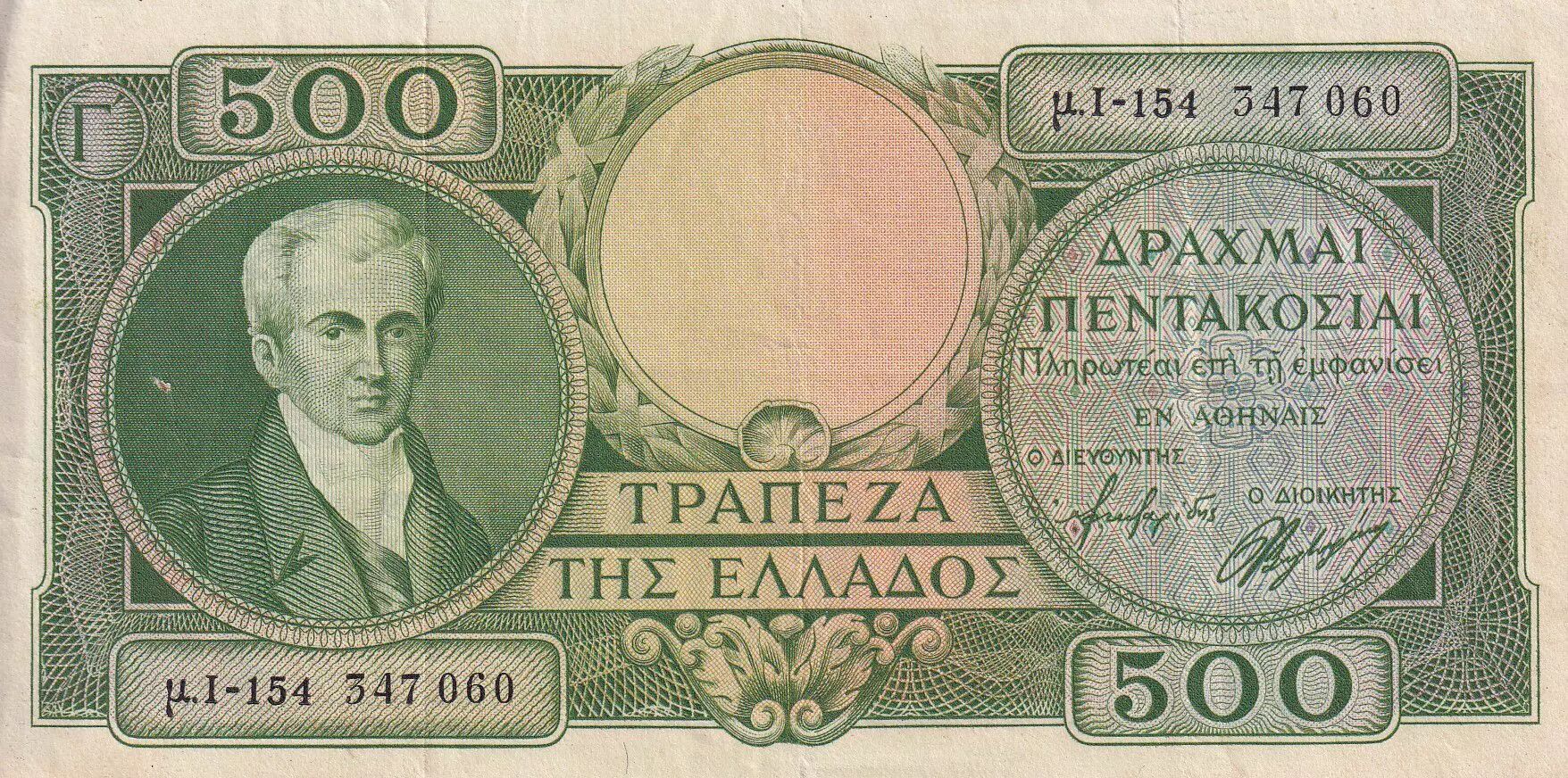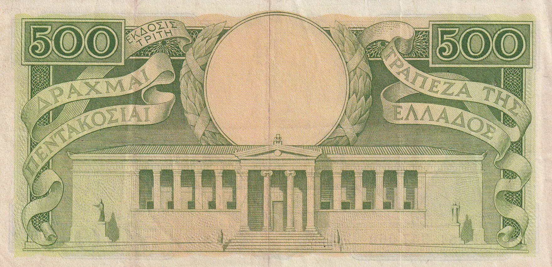 Accueil > Archivage > Grèce 500 Drachms - Capodistrias - Université d'Athènes - ND (1945) - P.171