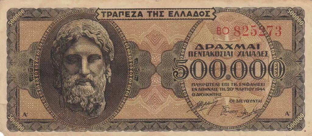 Accueil > Archivage > Grèce 500000 Drachmes 1944 - Zeus