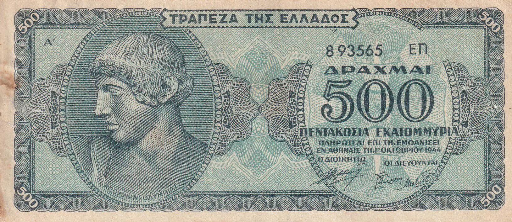 Accueil > Archivage > Grèce 500000000 Drachmai - Mythologie - 1944 - P.132b