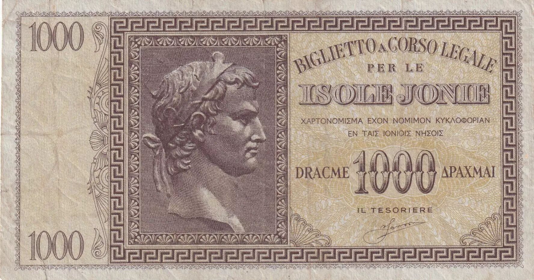 folds, stains. Nice note from Ionnian islandes issuing during the WWII during the italian occupation.