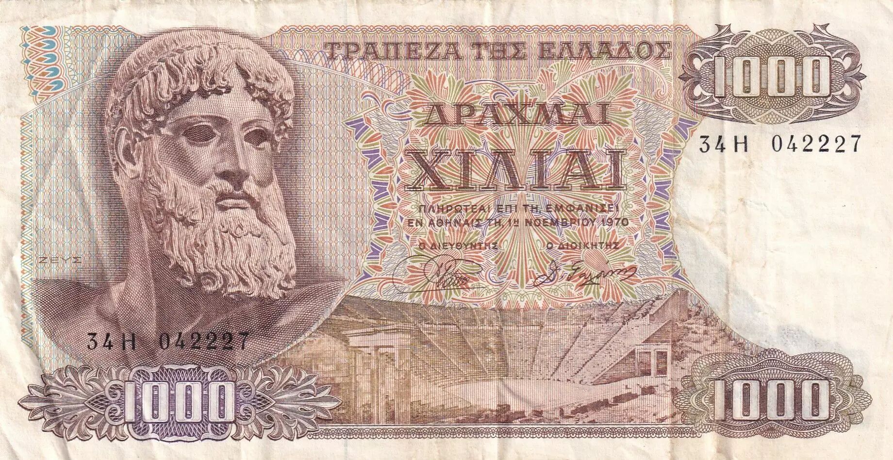 Banknote Greece 1000 Drachmai - Zeus - 1970