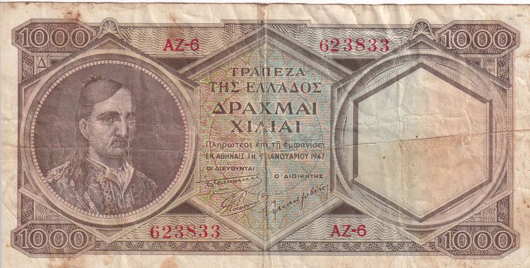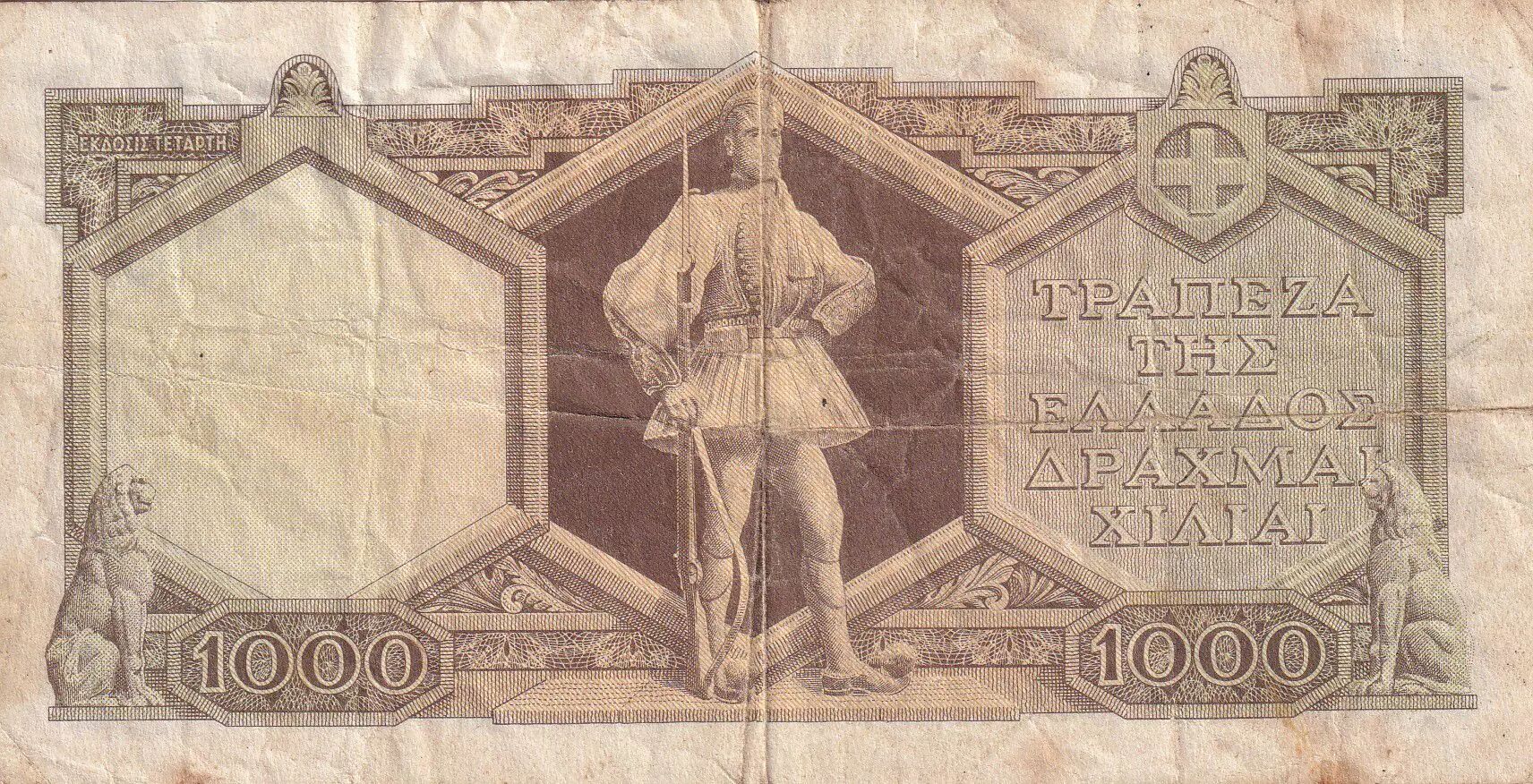 Home > > Greece 1000 Drachmes - Kolokotronis - Soldier- ND (1944) - P.172