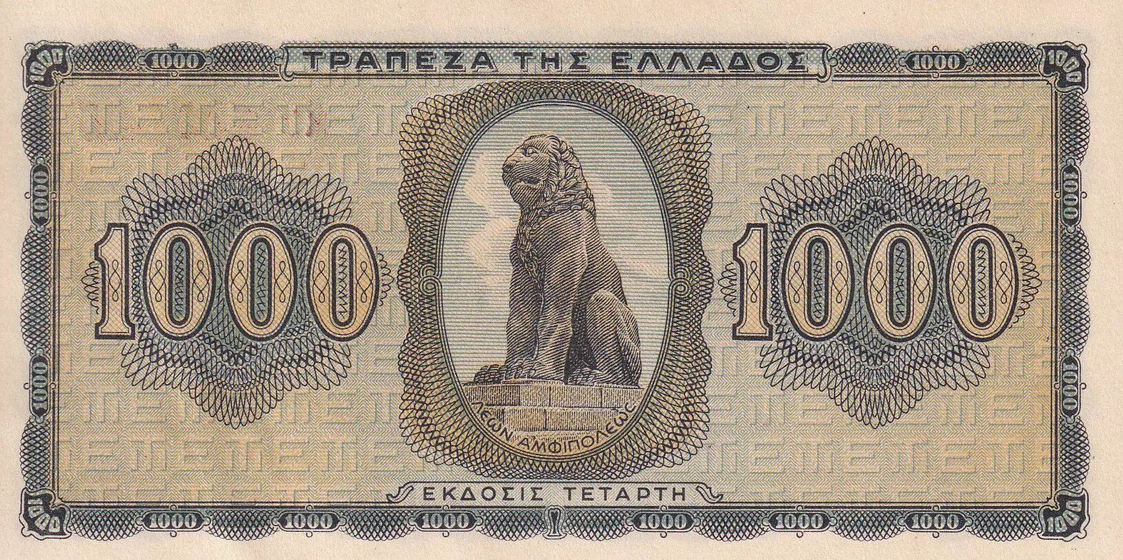 Home > > Greece 1000 Drachms - Young lady - Lion - 1942 - XF to AU - P.118