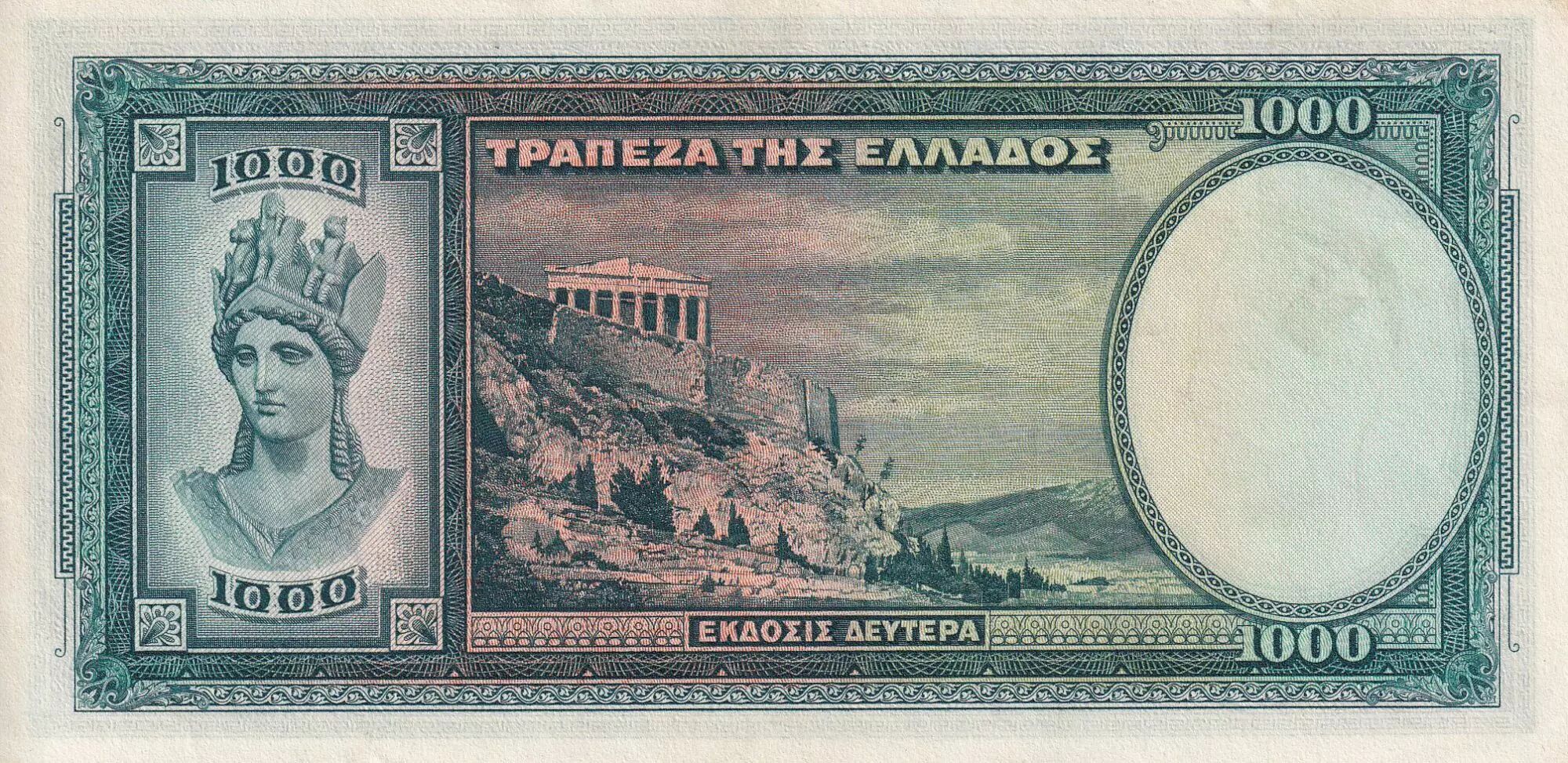Home > > Greece 1000 Drachms - Young lady - Temple - 1939 - Serial A.088 - XF to AU - P.110