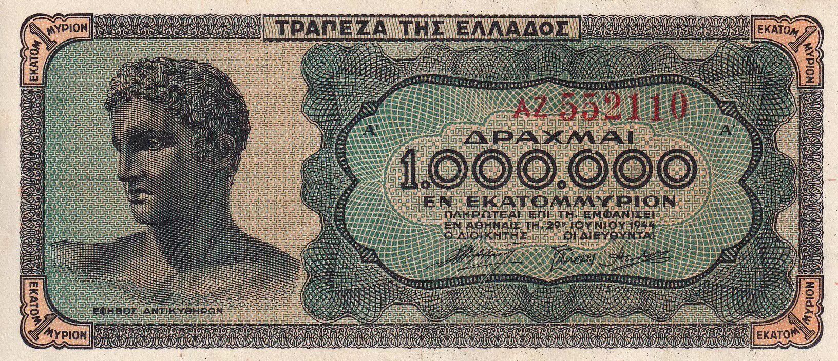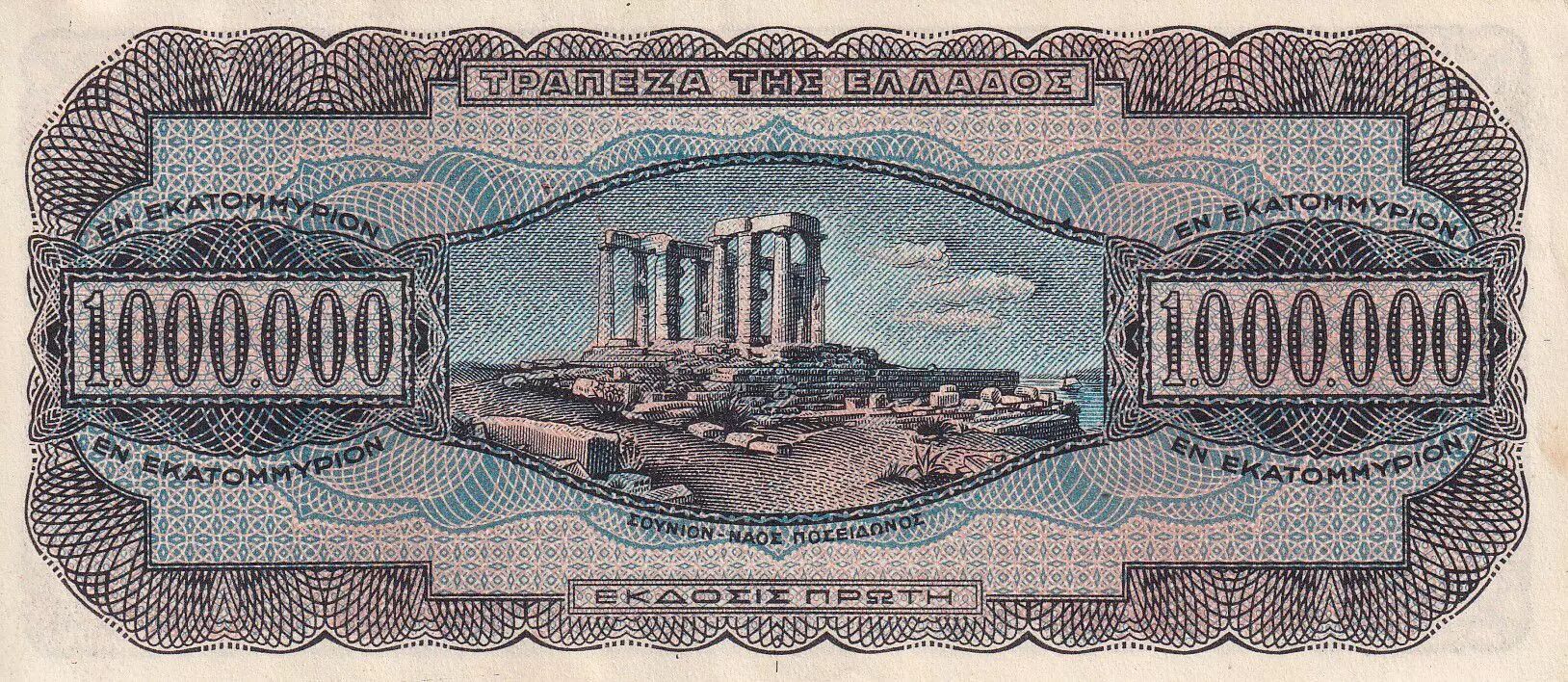 Home > > Greece 1000000 Drachmes - God - Parthenon - 1944- Serial AZ - XF to AU - P.127a