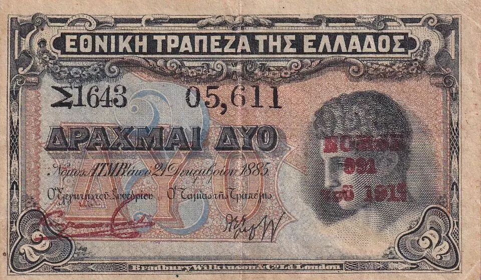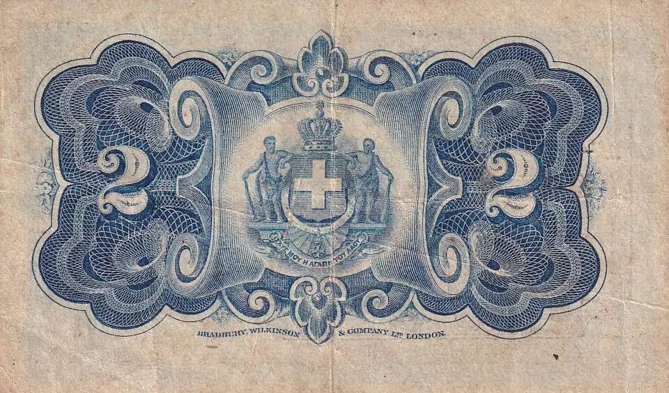 Banknote Greece 2 Drachmai - Hermes & Athena - Arms - 1917 - Letter M