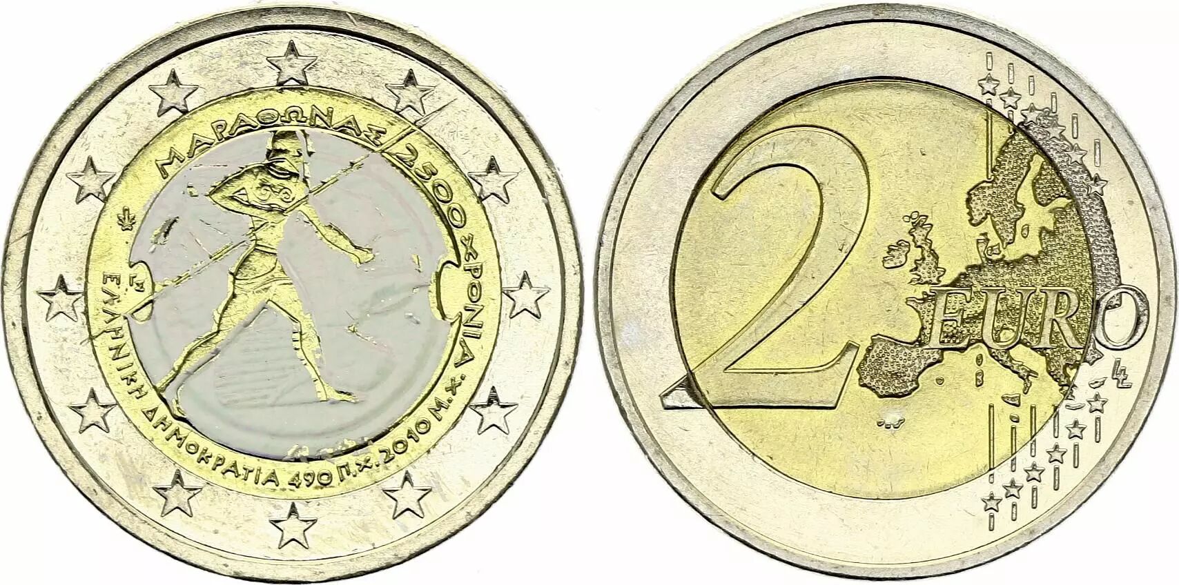 Coin Greece 2 Euros - Marathon - Colorised - 2010
