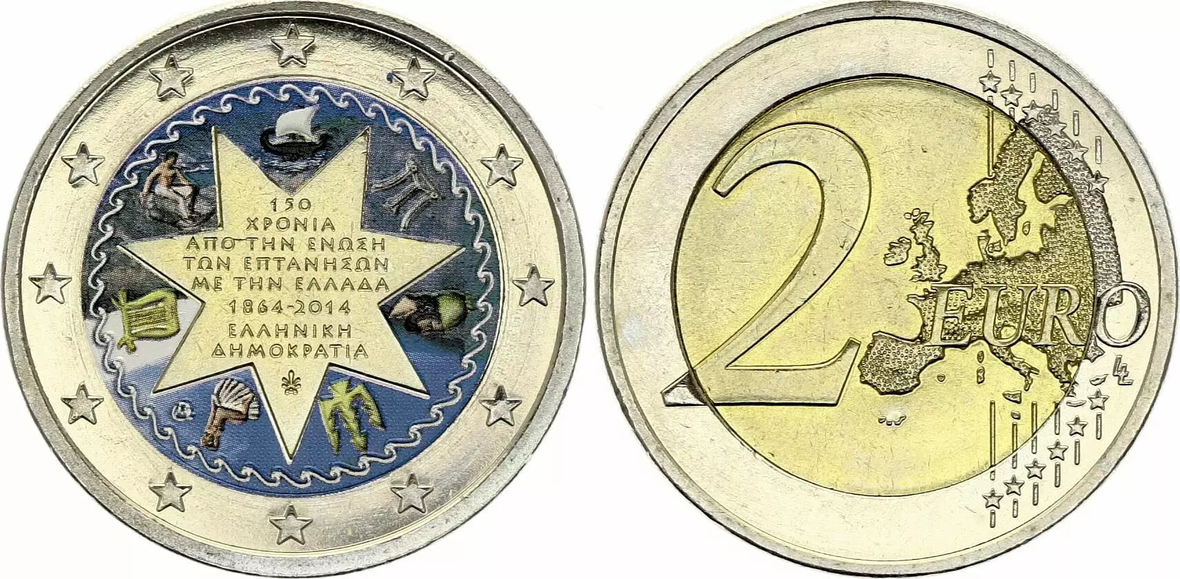 Home > > Greece 2 Euros - Unification of the Ionian islands - Colorised - 2014