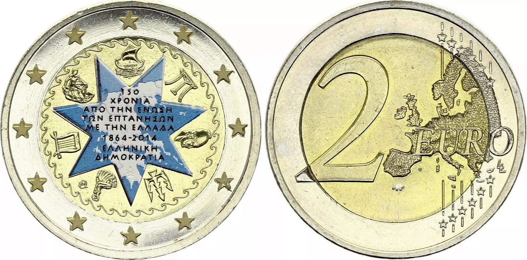 Coin Greece 2 Euros - Unification of the Ionian islands - Colorised - 2014