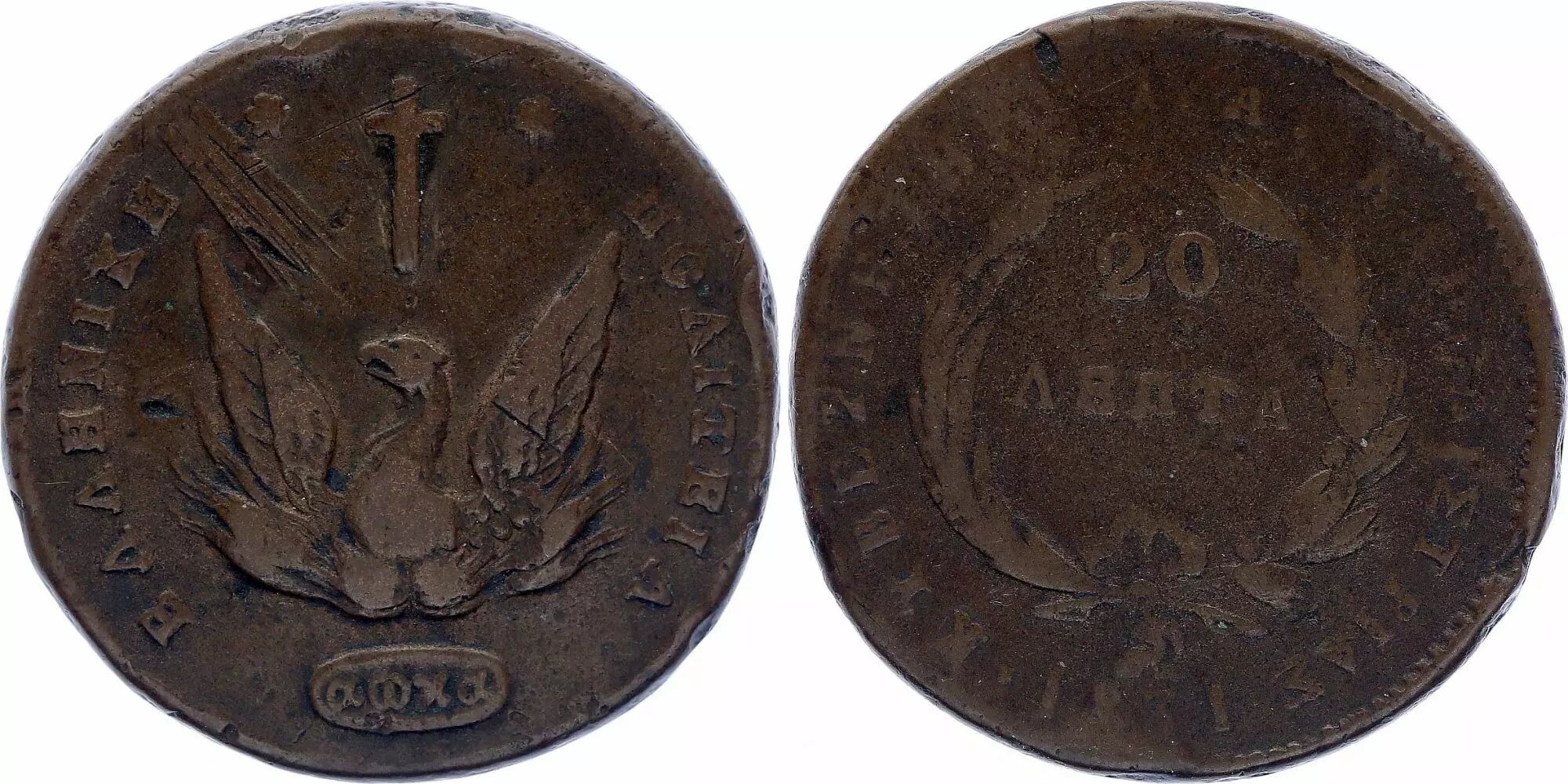 Home > World Coins > European Currencies > Greece > Greece 20 Lepta Phenix - 1831