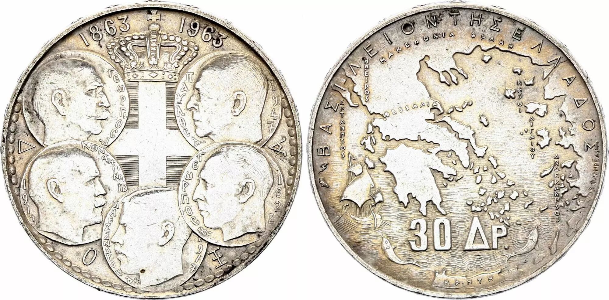 Home > World Coins > European Currencies > Greece > Greece 30 Drachmai - Paul I - 1963