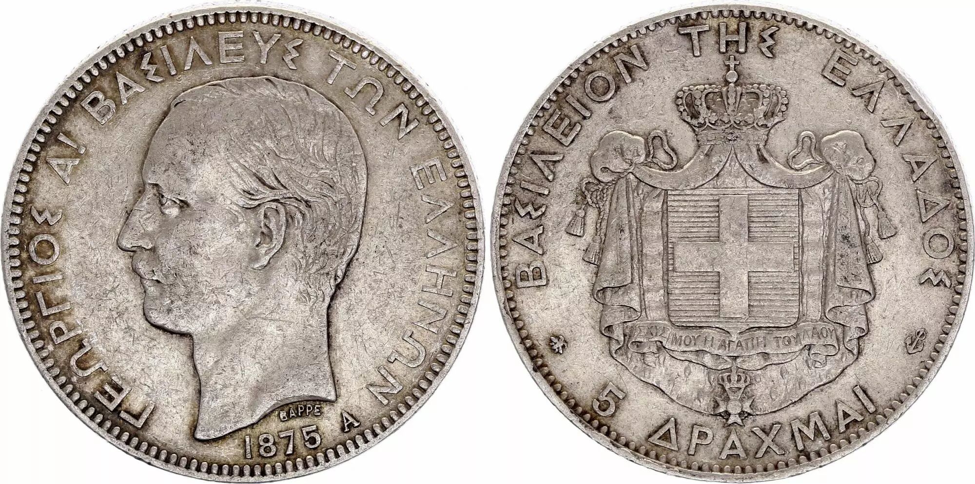 Coin Greece 5 Drachms - George I - Arms - 1875 A Paris
