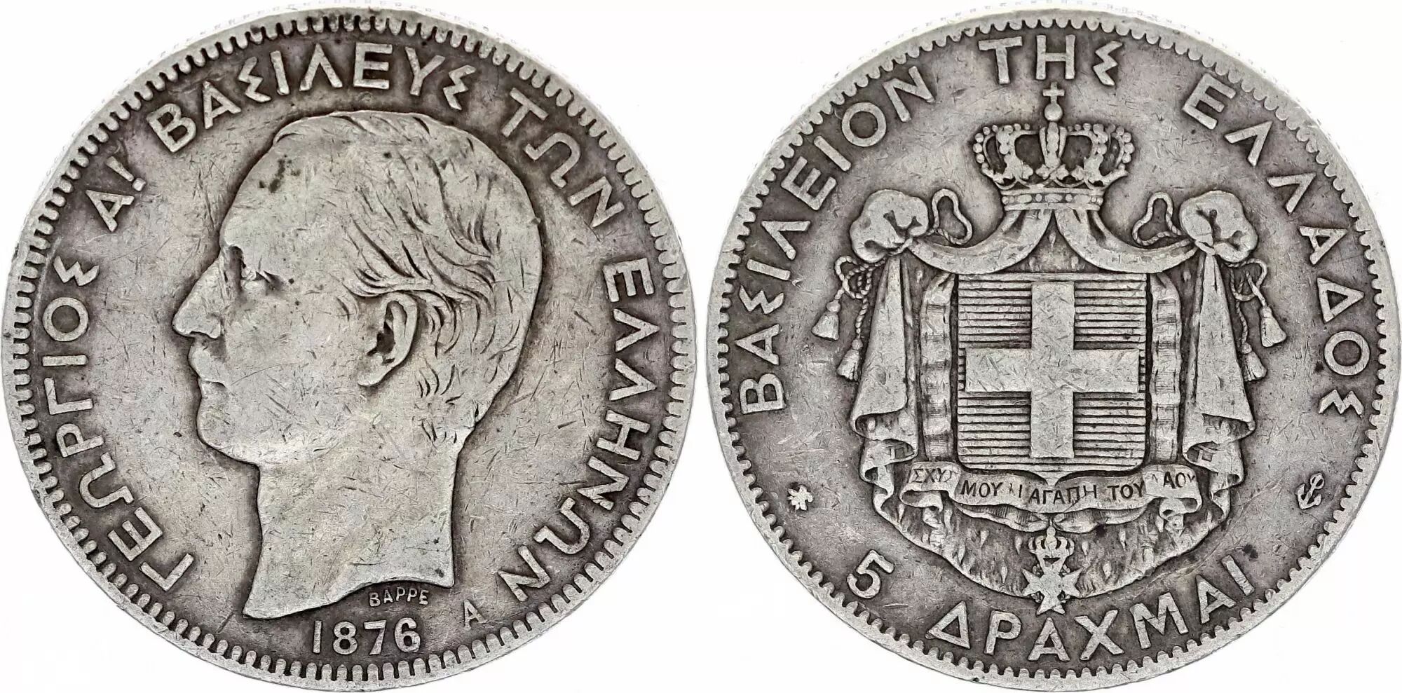 Coin Greece 5 Drachms George I - Arms - Silver - 1876 - A Paris