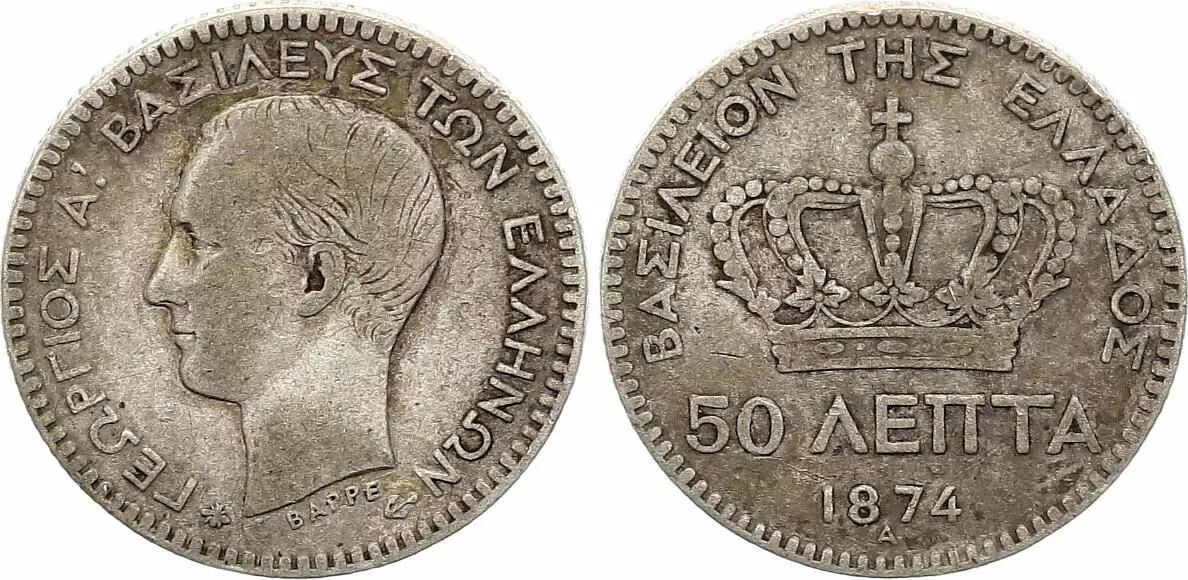Home > World Coins > European Currencies > Greece > Greece 50 Lepta George I - 1874 A Paris - Silver