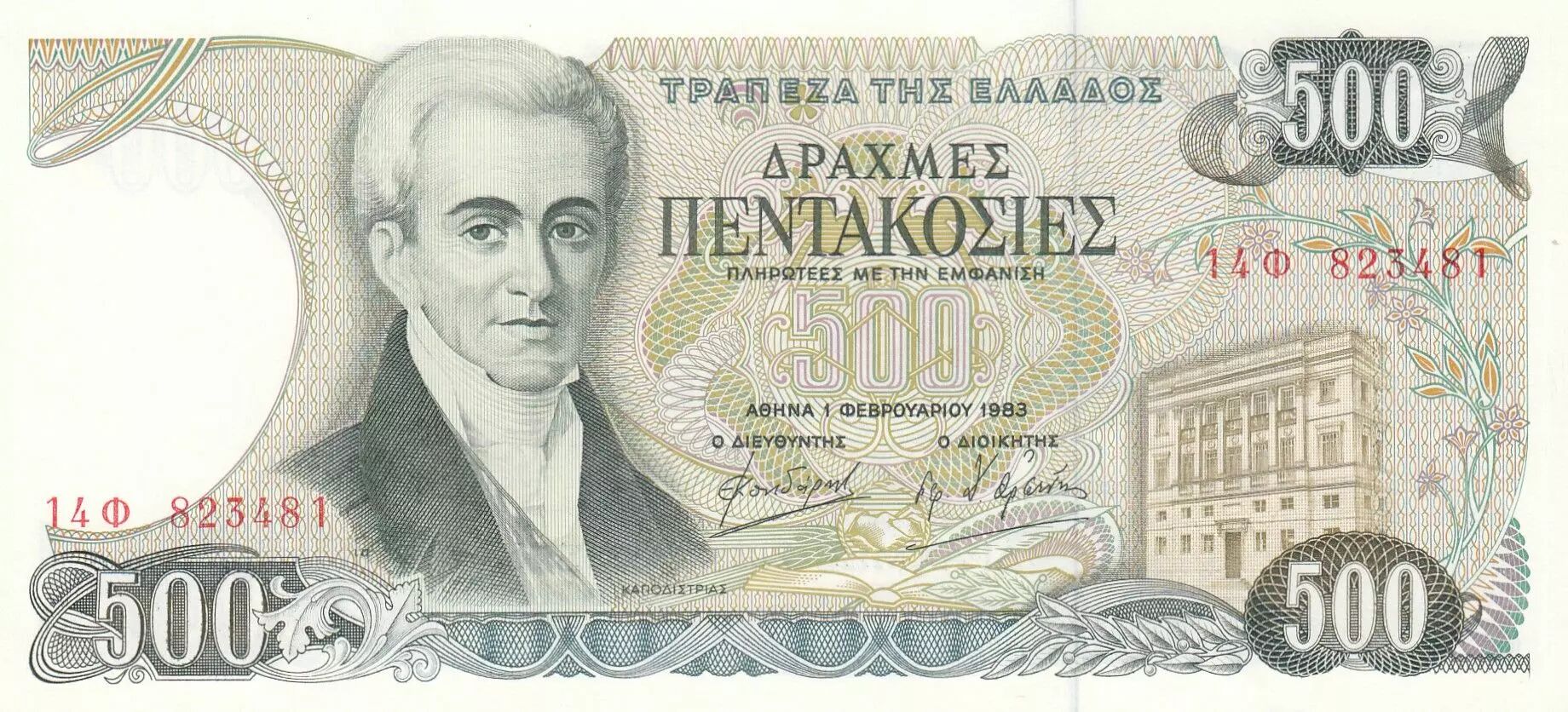 Home > > Greece 500 Drachmai - I. Capodistrias - Corfu - 01-02-1983 - Serial 14F