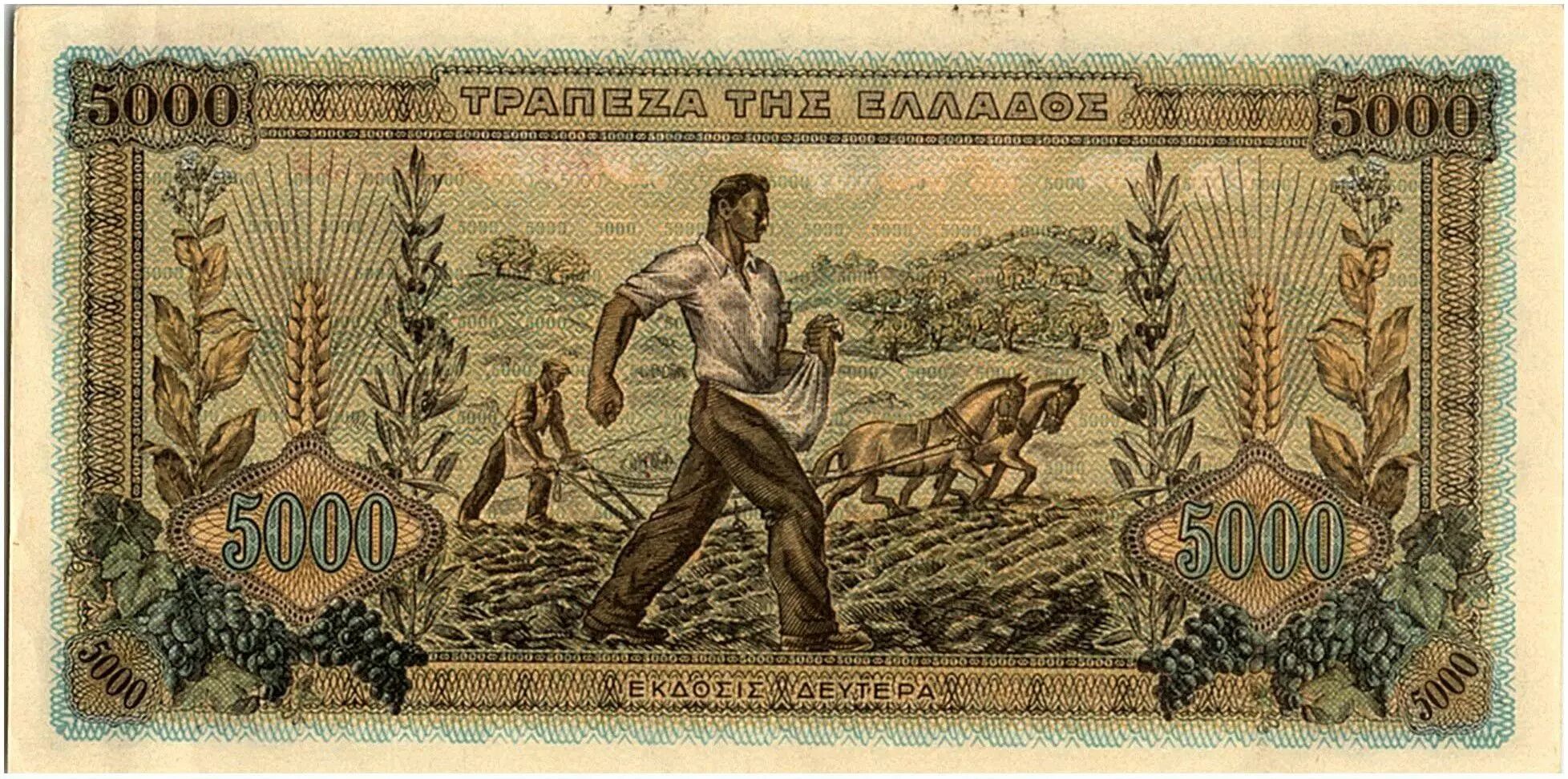 Banknote Greece 5000 Drachmes - Nike of Samothrace, harbour, ships - 1942