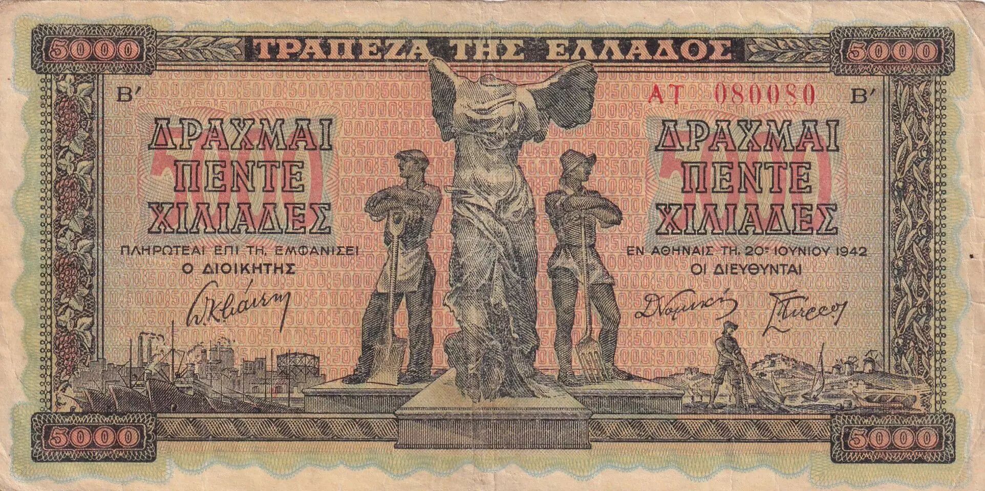 Banknote Greece 5000 Drachms - Nike of Samothrace - 1942