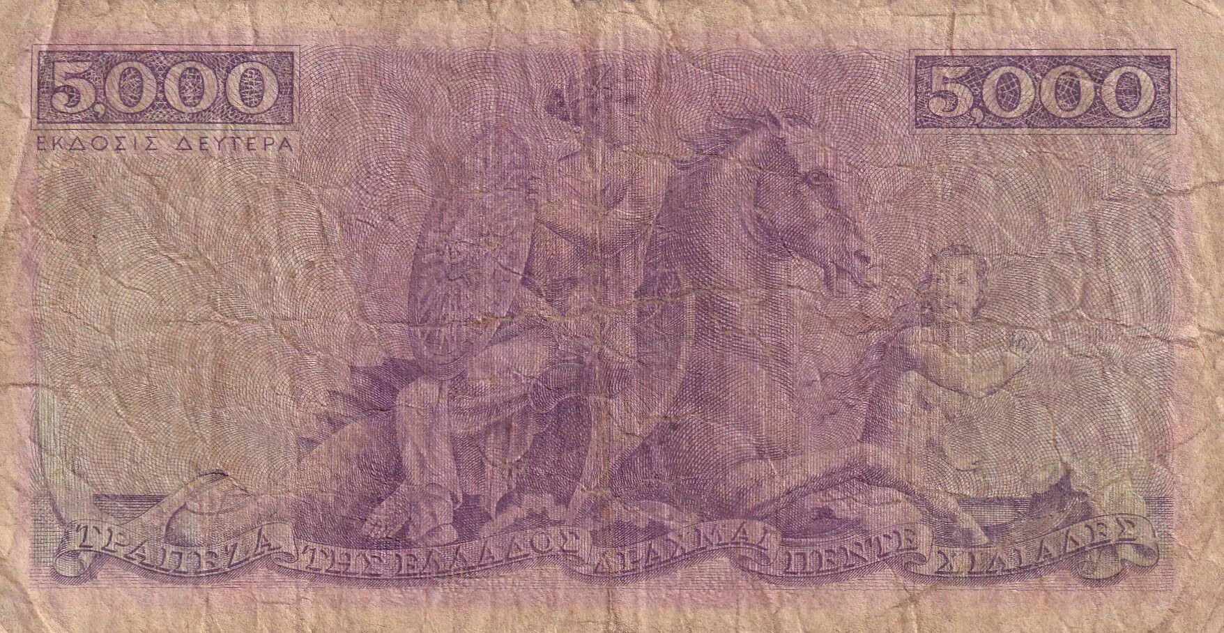 Home > > Greece 5000 Drachms - Woman and child - Mythical horse - ND (1947) - P.177