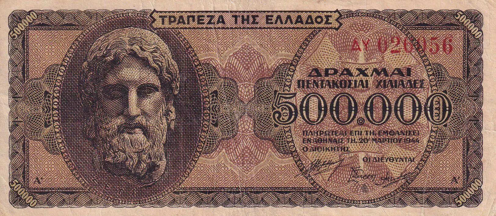 Banknote Greece 500000 Drachmes - Zeus - 1944 - P.126a