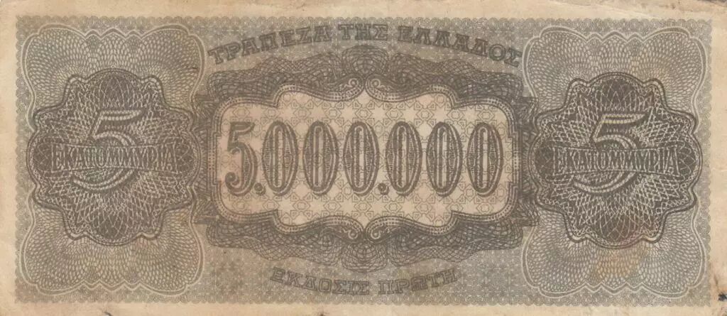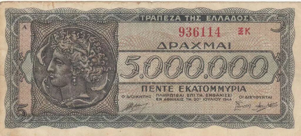 Banknote Greece 5.000.000 Drachms Arethusa (Nymphe) 1944 - F