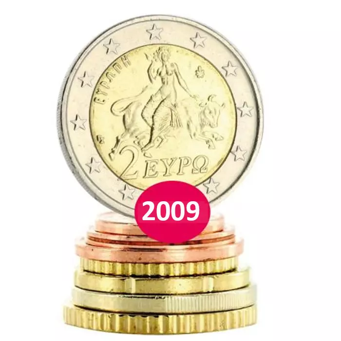 Contains the 8 coins of Greece, from the 1 cent to the 2 euro, with the 2009 mintage.