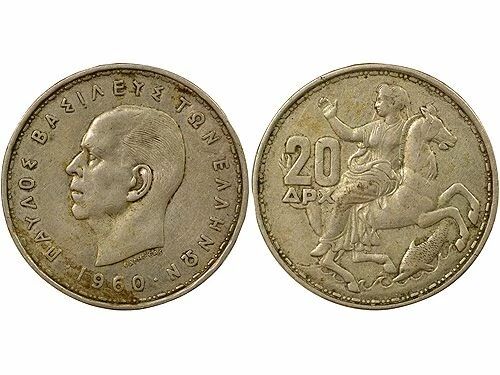 Home > World Coins > European Currencies > Greece > Greece Paul I - 20 Silver Drachmai - 1960 London