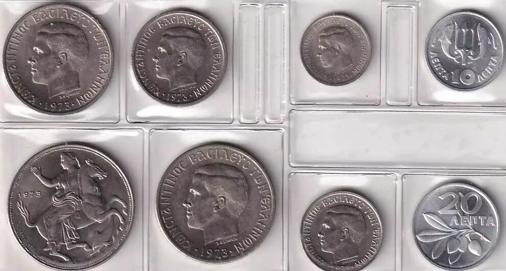 This set consists of : 10,20,50 lepta et 1,2,5,10,20 drachmai